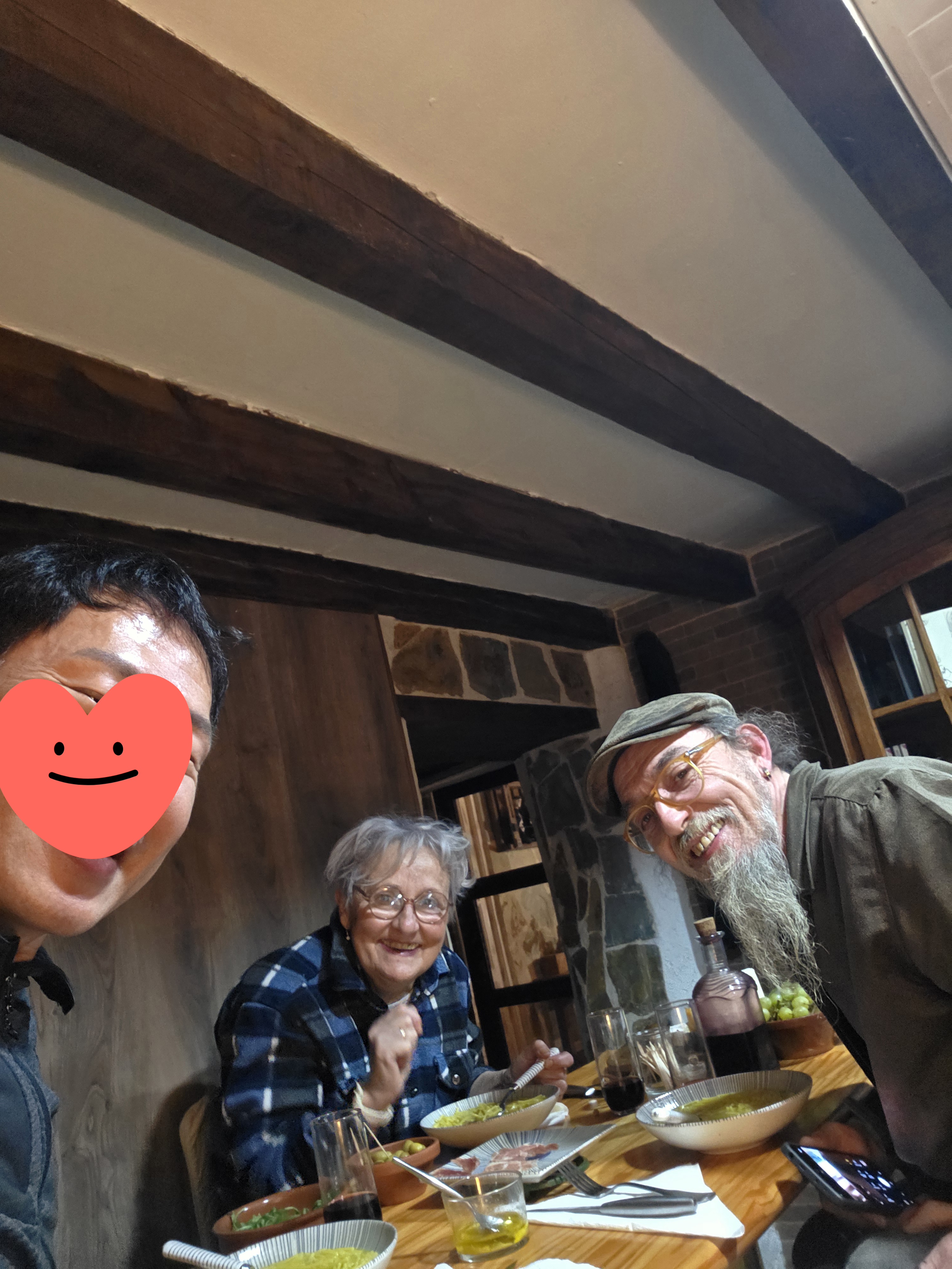 앙겔과 로사는 2006년에 산티아고 순례길, 그라뇽에서 결혼했다. 순례길에 인생을 바친 사람들처럼 산다. 프랑스에 살다가, 모든 재산을 팔아서 이 집을 샀고, 고요하고, 평화로운 마을에서 순례자를 기다리고, 환대하며 행복한 시간을 보내고 있다. 작년에 자전거로 순례길을 다니면서 찾은 최적의 장소가 Villarmentero de campos 였단다. 앙켈은 21번을, 로사는 17번을 순례길을 걸었다. 내게 원하는 저녁 시간을 묻는 그는 단지 하룻밤을 묵어가는 순례자에게 주도권을 내준 천사처럼 파스타가 들어간 수프와 터키식 오믈렛 그리고 프랑스의 대표적인 치즈 까망베르와 스페인 갈리시아 지방의 전통 허브 리큐어라는 독주를 내어준다. 자신의 공간이 순례자의 쉼터가 되길 바라는 진심. 사랑은 고통보다 잔혹하고, 석양처럼 붉게 물든다. 오늘을 기억하는 별무리가 되어 아파하는 모든 것을 사랑해야겠다.