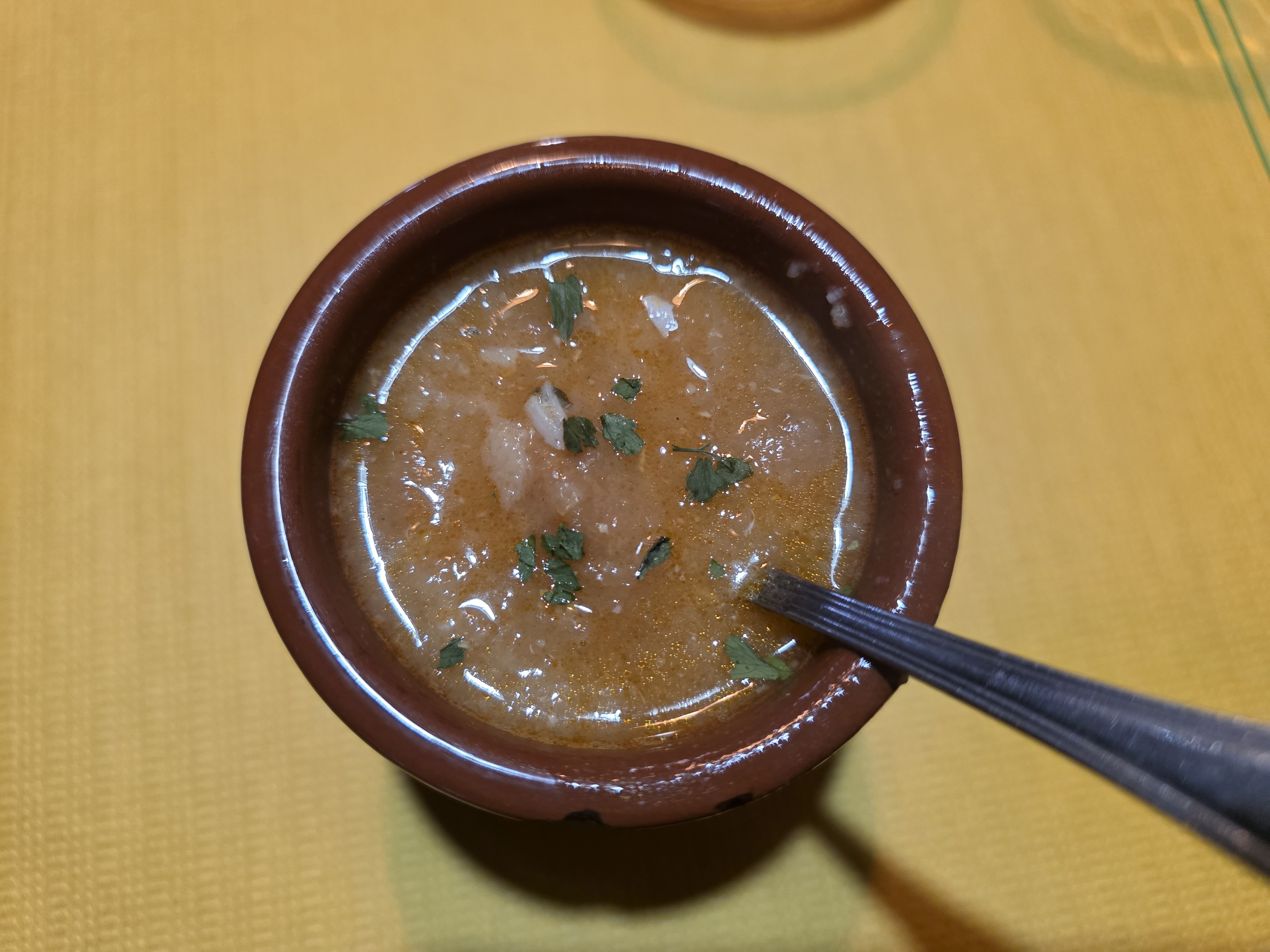 프로미스타에 들어서기 전부터 오른쪽 정강이 쪽에 통증이 있었고, 걸음은 느려졌다. 잠시 멈추면 사라지고, 다시 걸으면 도지는 아픔이다. 바람이 내게 준 선물이다. 통증은 몸의 소리에 집중하게 만든다. 원래 까리온까지 걸으려 했던 계획은 무너졌다. 프로미스타에서 계속 걸을 수 있을지, 멈춰야 할지 한참을 망설였다. 구글맵에서는 영업 종료였던 시간에 기꺼이 문을 열겠다며 맞아준 El Chiringuito Del Camino, 호세(Jose)와 앤디(Andy) 부부가 순례자에게 내어 준 따뜻한 한 끼의 위로. 그날의 기억을 기록하는 음식. 따뜻한 카스티야 수프와 돼지고기 폭립 그리고 와인과 디저트까지 먹고, 조금 더 나아갈 용기를 얻었다.